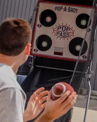 Bring the thrill of the stadium to your party with the Pop-A-Pass Football Toss Game — a fast-paced arcade-style challenge that tests accuracy, speed, and scoring nerves. Perfect for backyard get-togethers, tailgates, school events, fundraisers, or any game-day celebration, this rental sets up quickly and keeps crowds engaged: players race the clock, launch passes into target zones, and watch the built-in announcer and scoring system ramp up the energy. It’s easy for all ages to play but competitive enough to crown a reigning champ — ideal for friendly tournaments, halftime entertainment, or casual fun. Durable, eye-catching, and designed for repeated play, Pop-A-Pass adds high-energy, scoreboard-driven excitement to your event without any complicated setup.